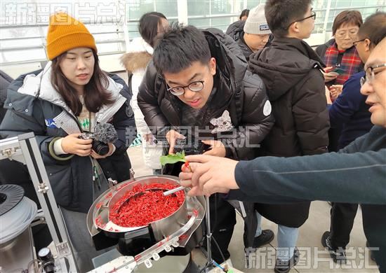 2023年12月19日,“四季看新疆”之“追着雪花看新疆”主题采访活动全媒体报道团队在位于昌吉国家农业高新技术产业示范区新疆农业博览园的未来农业科技馆内了解瓜菜砧木断根嫁接技术。