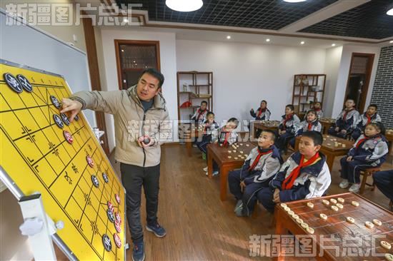 2023年12月19日,老师为学生讲解象棋棋局。