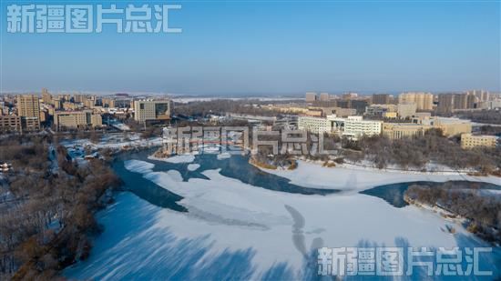俯瞰冬日里的博乐市冰河公园(2023年12月15日摄)。