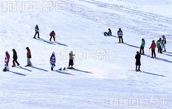 雪后的乌鲁木齐县南山艳阳高照,来自全国各地的滑雪爱好者在雪道上急速飞驰,尽享畅滑乐趣。