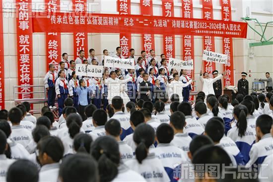 2023年12月8日,乌鲁木齐市第126中学(喀纳斯湖路校区)举办“传承红色基因,弘扬爱国精神”纪念“一二·九”运动诗朗诵比赛暨2023-2024学年入团仪式,同学们在朗诵爱国诗歌。