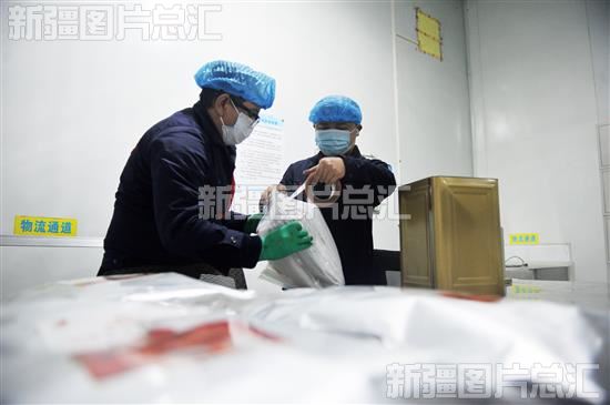 2023年12月12日,新疆科宇科技有限公司两位员工在打包番茄红素产品。