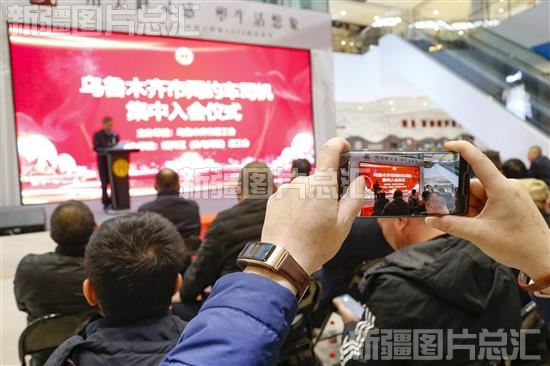 2023年12月5日,在乌鲁木齐市总工会主办的“乌鲁木齐市网约车司机集中入会仪式”上,一网约车司机拍照留念。