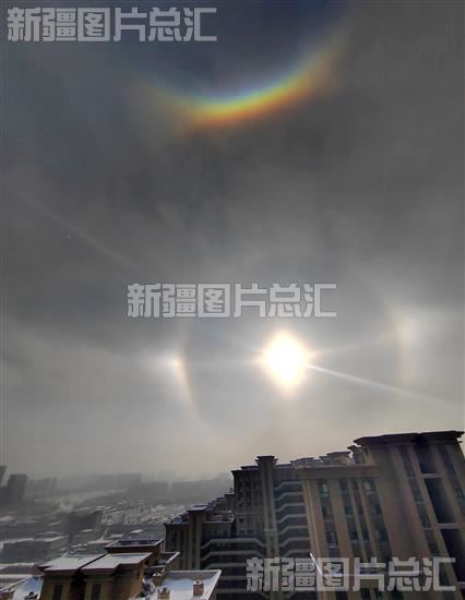 3个太阳+1道彩虹!乌鲁木齐市上空出现日晕、幻日、环天顶弧奇观