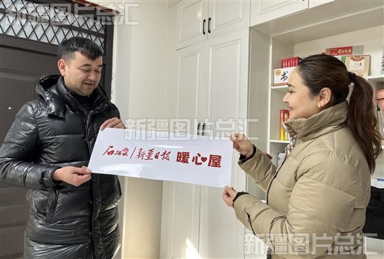 2023年12月14日,爱心企业代表在乌鲁木齐市天山区中湾街南社区户外劳动者服务站领取暖心屋贴标。