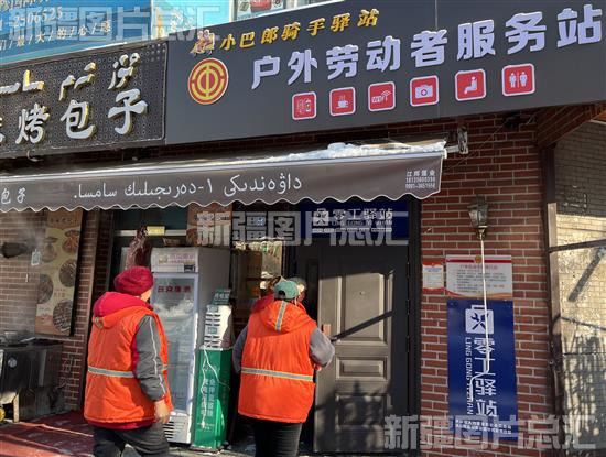 2023年12月14日,环卫工人走进位于乌鲁木齐市天山区中湾街南社区户外劳动者服务站。