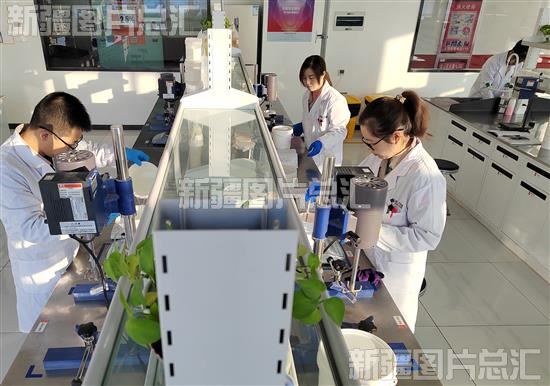 2023年12月14日,亚士创能科技(乌鲁木齐)有限公司工作人员在实验室对产品样本进行分析化验。