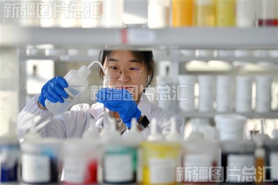 2023年12月14日,亚士创能科技(乌鲁木齐)有限公司工作人员在实验室对产品样本进行分析化验。