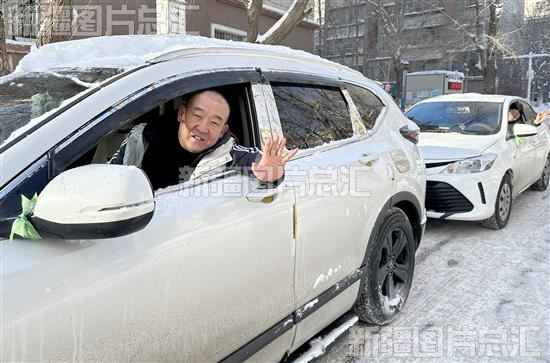 2023年12月14日,参加“顺风车”志愿服务的乌鲁木齐双拥雷锋车队队员准备出发。