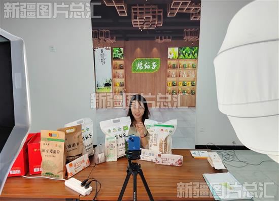 2023年12月20日,奇台县半截沟镇腰站子村新疆丰驿农业发展有限公司工作人员在直播销售腰站子品牌系列农产品。