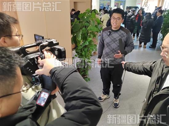 2023年12月20日,“四季看新疆”之“追着雪花看新疆”主题采访活动全媒体报道团队成员接受当地媒体采访。