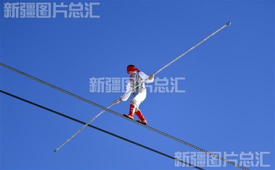 2023年12月19日,演员在丝绸之路山地度假区表演高空达瓦孜。