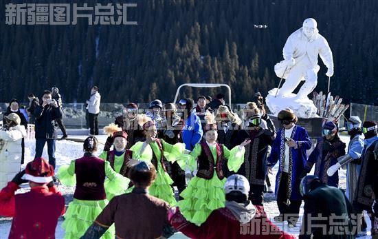 2023年12月19日,乌鲁木齐县群众在丝绸之路山地度假区为游客表演舞蹈。