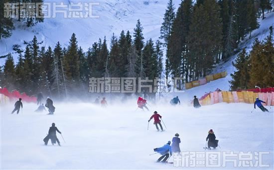 2023年12月19日,滑雪爱好者在丝绸之路山地度假区非常道上滑雪。