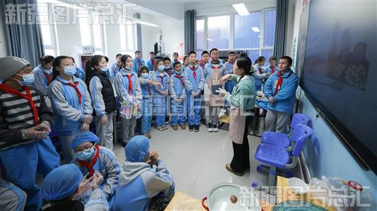 2023年12月20日,在博乐市第一小学劳技室内,劳动课老师正在讲冬至由来。