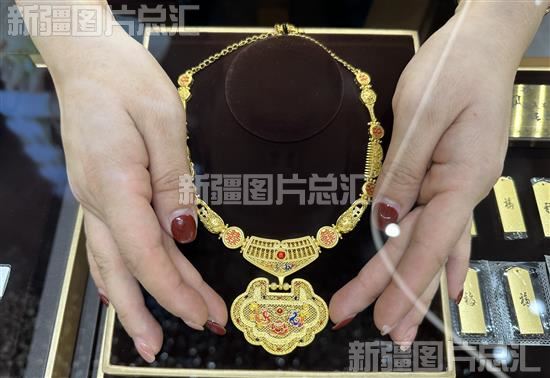 2023年12月21日,售货员在摆放金饰。