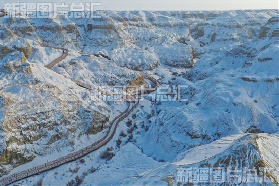 积雪覆盖的海上魔鬼城(2023年12月21日无人机摄)。
