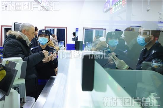 2023年12月14日,阿拉山口公路口岸,阿拉山口出入境边防检查站民警帮助游客翻译。