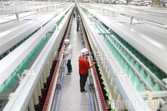 2023年12月22日,工人在位于新疆生产建设兵团第七师胡杨河市的新疆仁和纺织科技有限公司生产车间作业。