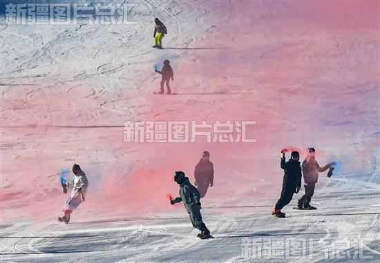 2023年12月24日,游客在位于温宿县天山托木尔景区·塔村滑雪场点燃烟花滑雪。