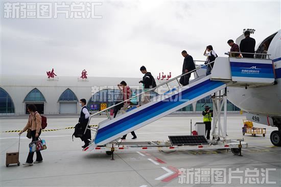 2023年11月2日,旅客乘坐民航客机抵达哈密伊州机场。