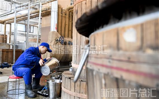 2023年12月24日,工作人员在伊力特酒文化产业园酿酒车间工作。