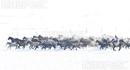 2023年12月23日,“天马踏雪”在昭苏县天马旅游文化园上演。