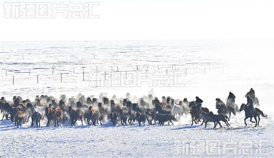 2023年12月23日,“天马踏雪”在昭苏县天马旅游文化园上演。