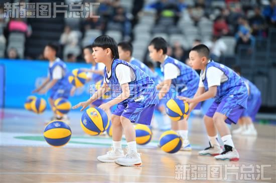 2023年12月24日,小小篮球爱好者在比赛间隙表演篮球技艺。