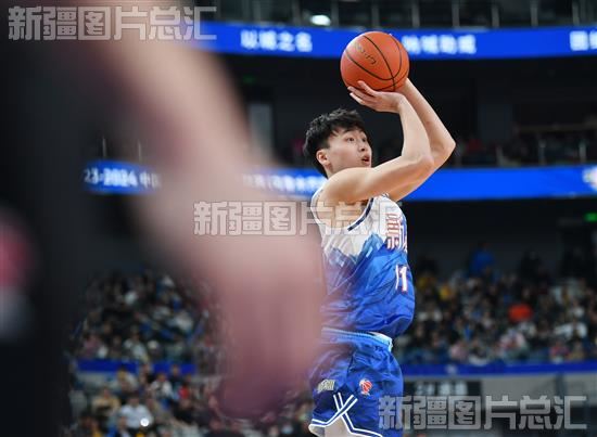 2023年12月24日,新疆男篮队员齐麟投篮。
