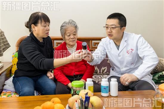 2023年12月23日,医生上门为居民讲解药的用法。