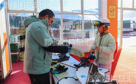 2023年12月23日,滑雪爱好者在雪具大厅领取雪具。