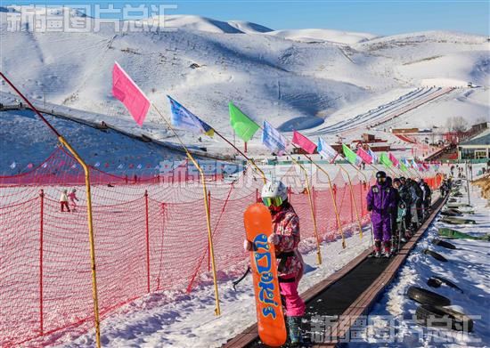 2023年12月23日,滑雪爱好者乘“魔毯”前往初级雪道。