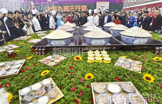 2023年9月23日,游客在参观新疆美食“九碗三行宴”。