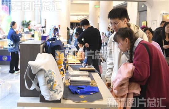 2023年10月4日,游客在新疆博物馆文创区选购文创产品。