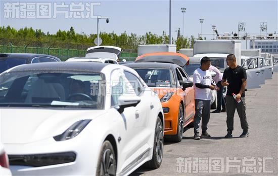2023年7月26日,在霍尔果斯海关查验场国产商品车驾驶员等待查验通关。