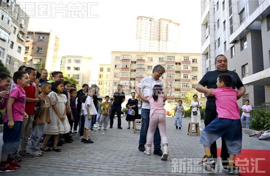 2023年6月16日,乌鲁木齐市天山区新华南路街道三桥社区的居民在参加“小脚踩大脚”亲子互动比赛。