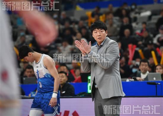 2023年12月27日,新疆男篮主教练邱彪为队员的表现鼓掌。