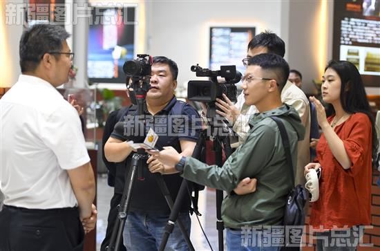 2023年5月17日,中央广播电视总台华语中心记者和辽宁广播电视台新闻中心记者在塔城市手风琴博物馆采访塔城市文化建设。
