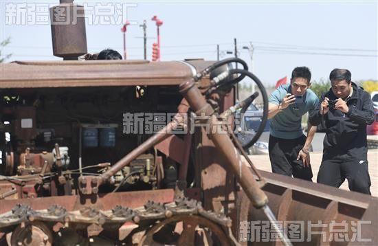 2023年5月18日,法治日报政文部记者赵晨熙(右一)和和辽宁日报新媒体采访和运维部记者卢立业在裕民县“七零八零”年代印象拍摄小视频。