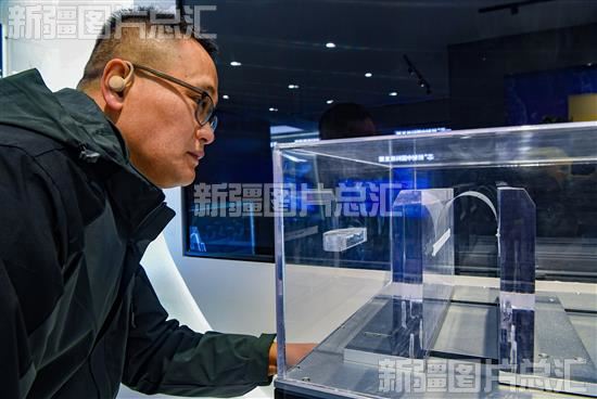 2023年12月26日,参观者在新疆腾宇光电科技有限公司观看超薄柔性电子玻璃(UTG)样品耐折实验。