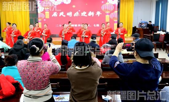 2023年12月26日,社区居民在新疆生产建设兵团第二师22团幸福社区举办的“同欢乐,迎新年”联欢活动上观看演出。