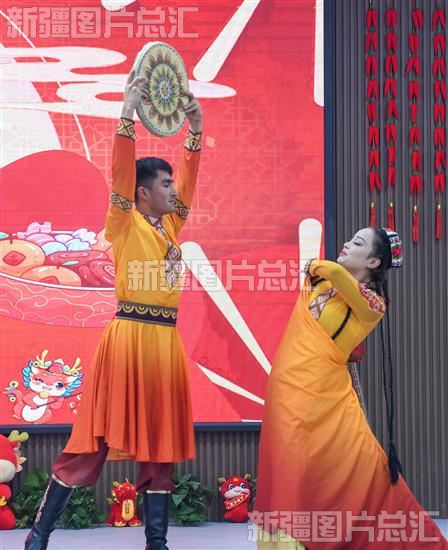 2023年12月27日,温宿县文工团演员在表演舞蹈。