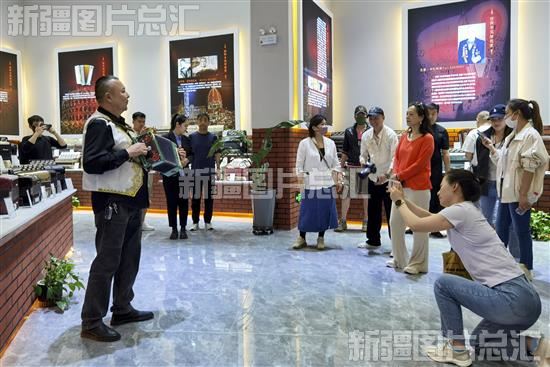 2023年5月17日,游客在塔城市手风琴博物馆参观,塔城市也被称为“手风琴之城”。