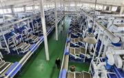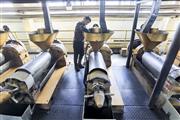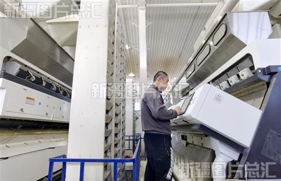 2023年4月26日,新疆锡伯图商贸有限公司员工在自动化的脱壳生产线上工作。