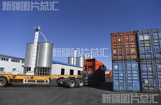 2023年4月26日,新疆锡伯图商贸有限公司员工拉运进口的粮油原料。
