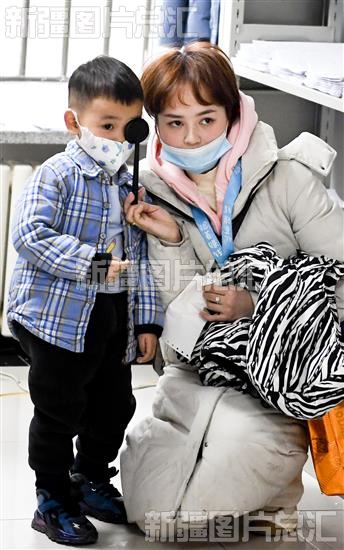 2023年2月16日,小朋友在沙依巴克区炉院街卫生服务中心检查视力,该中心健康体检包括心电图、生化检查、口腔等20多个项目。
