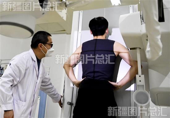 2023年2月16日,社区居民在沙依巴克区炉院街卫生服务中心拍X光胸片,该中心健康体检包括心电图、生化检查、口腔等20多个项目。