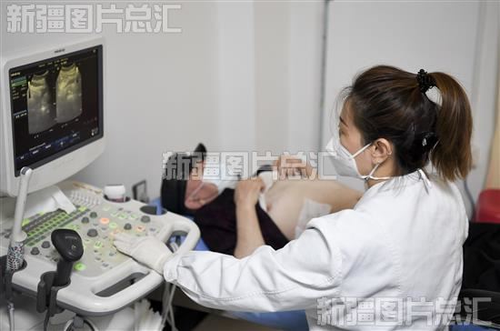 2023年2月16日,社区居民在沙依巴克区炉院街卫生服务中心做B超,该中心健康体检包括心电图、生化检查、口腔等20多个项目。