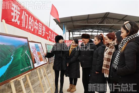2023年12月27日,游客和当地群众在“三下乡”服务活动现场欣赏摄影作品。